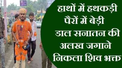 हाथों में हथकड़ी पैरों में बेड़ी डाले 35 किलोमीटर की यात्रा पर निकला शिव भक्त
