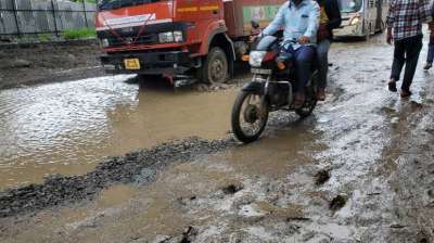 इंदौर में बारिश के बाद सड़कें हुईं बदहाल, जगह-जगह धंसकने लगे रास्ते