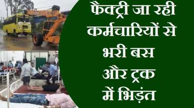 फैक्ट्री जा रही कर्मचारियों से भरी बस और ट्रक में भिड़ंत