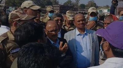 नगर निगम पर प्रदर्शन, बैरिकेडिंग के बीच कार्यकर्ताओं ने किया हनुमान चालीसा का पाठ
