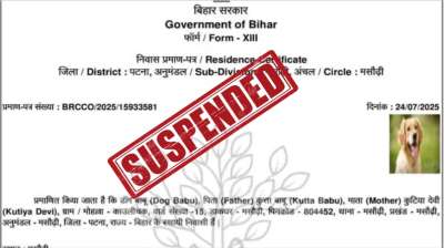 Dog Babu Viral Certificate पटना के मसौढ़ी अंचल से संबंधित ‘डॉग बाबू’ के नाम से एक आवास प्रमाण-पत्र जारी मामले में पटना जिला प्रशासन ने सोमवार को त्वरित कार्रवाई करते...