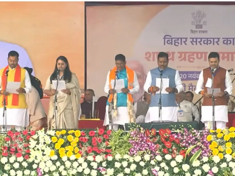 बिहार | बिहार विधानसभा में बहुमत हासिल करने के बाद गुरुवार को पटना के गांधी मैदान में नीतीश कुमार 10वीं बार मुख्यमंत्री पद की शपथ ली. नीतीश कुमार के साथ सहयोगी दल भारतीय जनता पार्टी, जनता दल यूनाइडेट, लोजपा (रामविलास), हम और रालोमो से कुल 26 एमएलए ने भी मंत्री पद की शपथ ली. नीतीश सरकार के नए कैबिनेट में पुरानी सरकार के 19 मंत्रियों की छुट्टी हो गई जबकि 12 नए मंत्रियों ने एंट्री ले ली है.