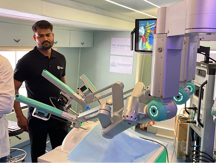 भोपाल। भारत में बनी पहली मोबाइल टेली रोबोटिक सर्जरी यूनिट एसएसआई मंत्रा एम राजधानी भोपाल पहुंची। शहर के एक नजी अस्पताल में एक महिला की बच्चेदानी निकालने की सर्जरी (हिस्ट्रैक्टोमी) की गई। जिसमें मरीज ओटी में थी, जबकि ऑपरेटिंग सर्जन बस में लगे टेली रोबोटिक कंसोल पर मौजूद थीं। यह सर्जरी डॉ. प्रिया भावे चित्तावर और उनकी टीम द्वारा की गईं। डॉ. चित्तवार के अनुसार, यह मध्य भारत में महिलाओं पर की गई पहली टेली-रोबोटिक सर्जरी और भारत में दूसरी ऐसी प्रक्रिया है जिसमें सर्जन दूरस्थ कंसोल से रोबोट को नियंत्रित करते हैं और ओटी में रोबोट वास्तविक सर्जरी करता है। नियंत्रण पूरी तरह सर्जन के हाथ में रहता है। बस के भीतर लगे कंसोल से सर्जन ने इंस्ट्रूमेंट आर्म्स को कंट्रोल किया, जबकि ओटी के भीतर रोबोट ने सटीक मूवमेंट्स से टिश्यू डिसेक्शन और हेमोस्टेसिस को अंजाम दिया। कैंपस में आए डॉक्टरों और पीजी विद्यार्थियोंं ने लाइव-फीड पर प्रक्रिया देखी और सिस्टम की बारीकियों को समझा।