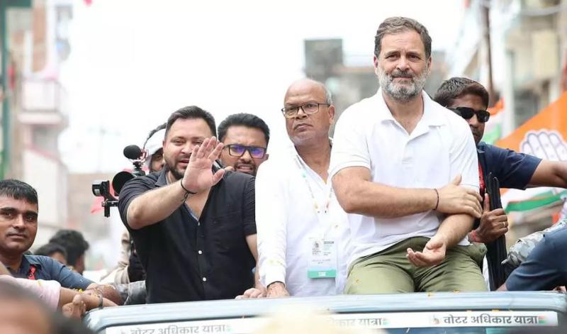 कटिहार में राहुल गांधी और तेजस्वी यादव की संयुक्त रैली, झारखंड मंत्री भी पहुंचे मंच पर