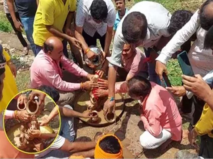 मंदिर समिति के कैलाश मिश्र ने बताया कि उन्हें कई दिन से स्वप्न में गणेश जी की प्रतिमा जमीन में दबे का अभास हो रहा था। कई बार समिति वालों को बताया भी था। गणेशोत्सव प्रारंभ होते ही समिति सदस्यों ने कहा कि जो स्थान दिखता है, वहां खुदाई करवाकर देखते हैं। पूजा-पाठ करने के बाद जेसीबी से खुदाई करने के बाद गणेश जी और नंदी की प्रतिमा निकली है। दोनों काफी प्राचीन प्रतिमाएं हैं। हम पर गजानन स्वामी ने कृपा की है।