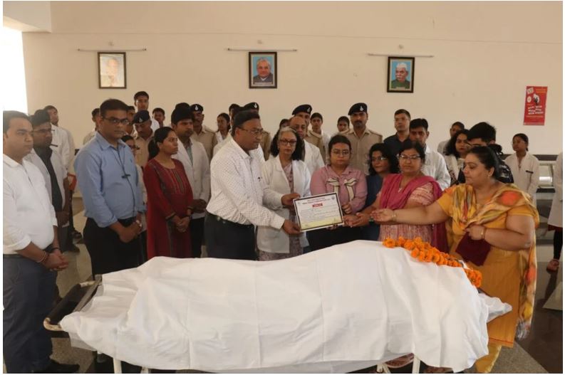 इस दौरान मेडिकल कॉलेज के फाउंडर डॉ डी. परमहंस ने परिवार को इस दुख की घड़ी में परिवार को ढांढस बंधाया। उन्होंने परिवार के इस निर्णय की सराहना की और हमेशा परिवार को हर संभव मदद का आश्वासन दिया। इस दौरान दिवंगत सरोज की बेटी पुनीता ने बताया कि उनकी मां ने 2017 में देहदान करने का निर्णय लिया था।