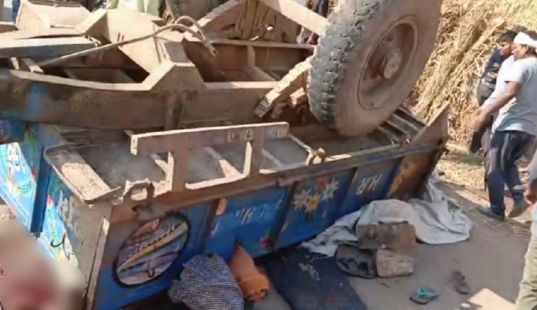 श्रद्धालुओं से भरी ट्रैक्टर-ट्रॉली पलटी, महिला और युवती की दबकर मौत, बच्चों समेत 18 घायल