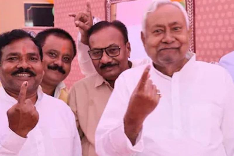 कड़ी सुरक्षा के बीच नीतीश ने डाला वोट, साथ खड़े शख्स की पहचान को लेकर मची हलचल