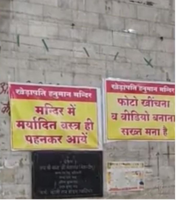 आपको बता दें कि शहर के दो प्रमुख आस्था केंद्रों, खेड़ापति हनुमान मंदिर और बालाजी धाम सरकार में श्रद्धालुओं को शालीन और पूरे वस्त्र पहनकर आने के निर्देश दिए गए हैं. प्रबंधन का कहना है कि आस्था के इन पवित्र स्थलों पर स्कर्ट, मिनी टॉप या कटे-फटे कपड़े पहनकर अक्सर युवा आते हैं, जो मंदिर की गरिमा के प्रतिकूल है. इसी कारण मंदिर प्रबंधन ने श्रद्धालुओं को नियमों के पालन के लिए जागरूक करते हुए परिसर में पोस्टर लगाए हैं।