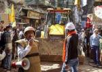 बुलडोजर और मजदूरों की टीम ने संभाली कमान, लगातार गिर रहे भवन