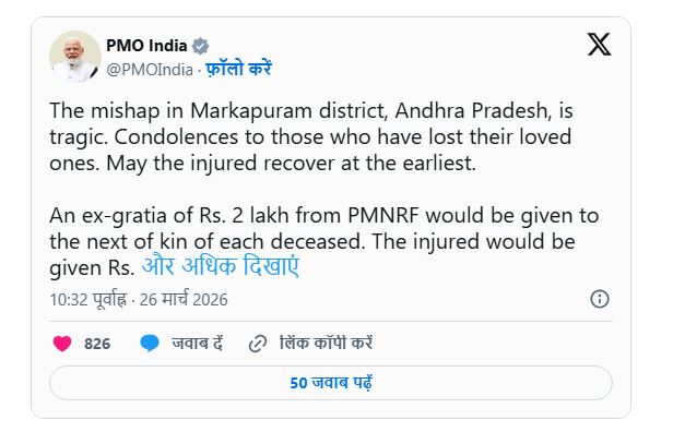 आंध्र प्रदेश बस हादसे पर शोक की लहर, प्रधानमंत्री कार्यालय ने की सहायता की घोषणा