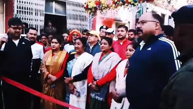 नगर निगम पर प्रदर्शन, बैरिकेडिंग के बीच कार्यकर्ताओं ने किया हनुमान चालीसा का पाठ
