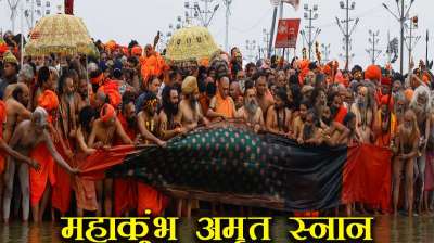 मकर संक्रांति पर महानिर्वाणी अखाड़े के संतों ने किया अमृत स्नान- महाकुंभ मेला