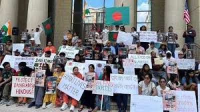 बांग्लादेश में अल्पसंख्यकों के खिलाफ हिंसा के विरोध में अमेरिका में प्रदर्शन
