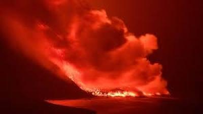 ज्वालामुखी के फटने से दहशत, आसमान तक पहुंची लावा की लपटें