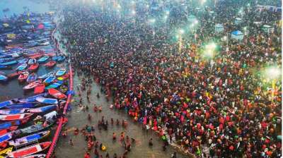 महाकुंभ में उमड़ा श्रद्धालुओं का सैलाब...हेलिकॉप्टर से फूल बरसाए, जय श्री राम के जयघोष से गूंजा आसमान, 44 घाटों पर स्नान