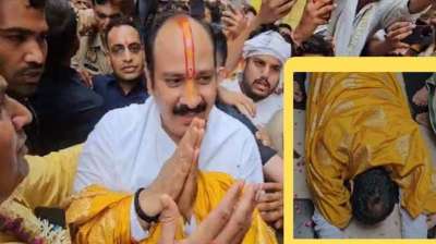कथावाचक प्रदीप मिश्रा ने राधारानी के दरबार में दंडवत होकर मांगी माफी