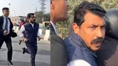 आगे-आगे चंद्रशेखर, पीछे-पीछे पुलिस का काफिला
